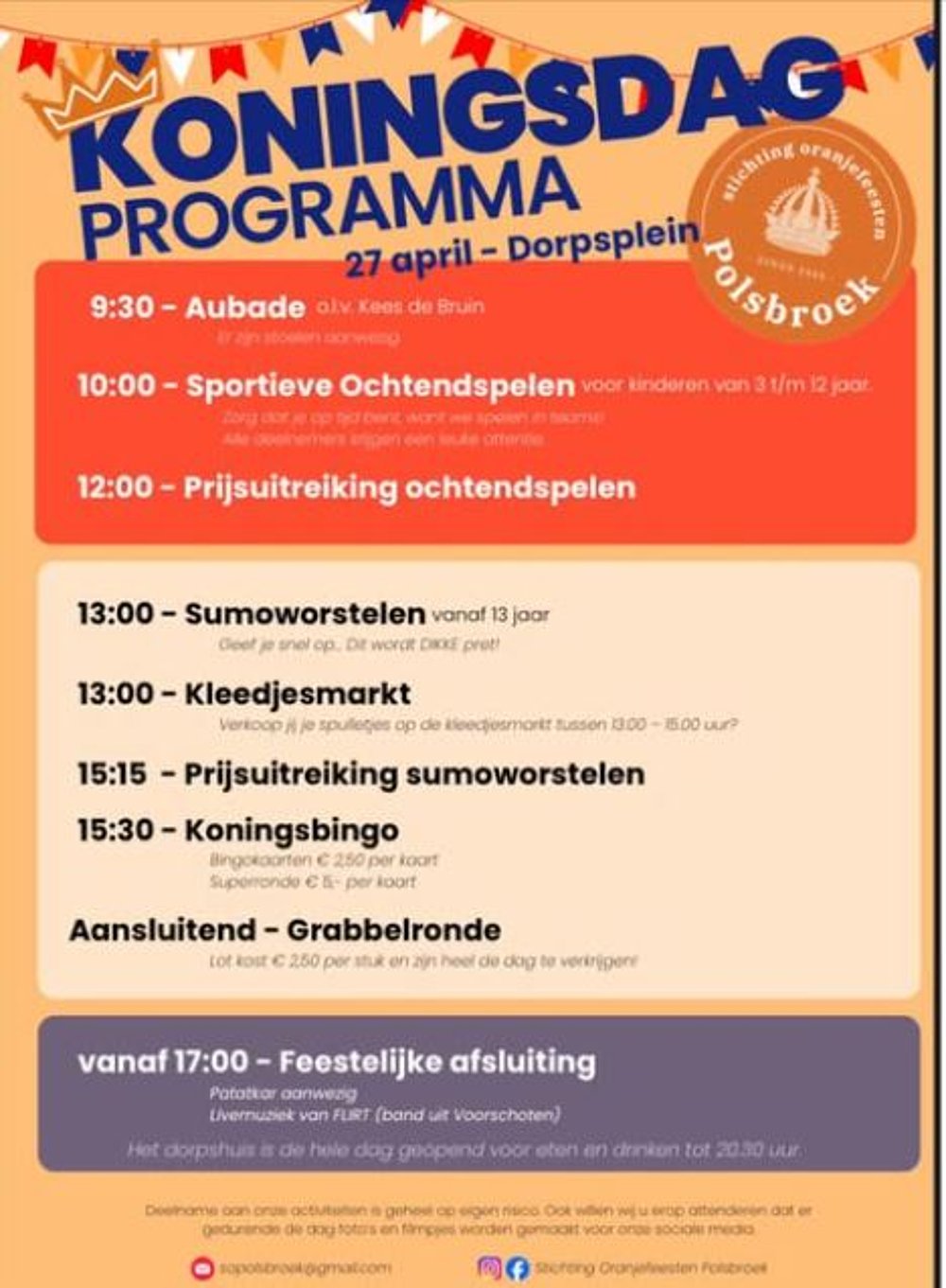 www.oranjefeestenpolsbroek.nl e-mail: sopolsbroek@gmail.com Facebook: Stichting Oranjefeesten Polsbroek